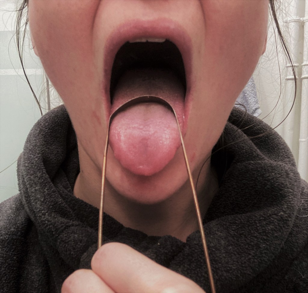 Le grattage de langue doit être réalisé avec un ustensile adapté, en cuivre ou en acier inoxydable afin d’avoir un petit effet désinfectant et d’éviter les risques de contamination bactérienne. Evitez de le réaliser avec votre brosse à dent, qui est plus agressive et peut irriter la langue. A défaut, vous pouvez utiliser une cuillère en inox.