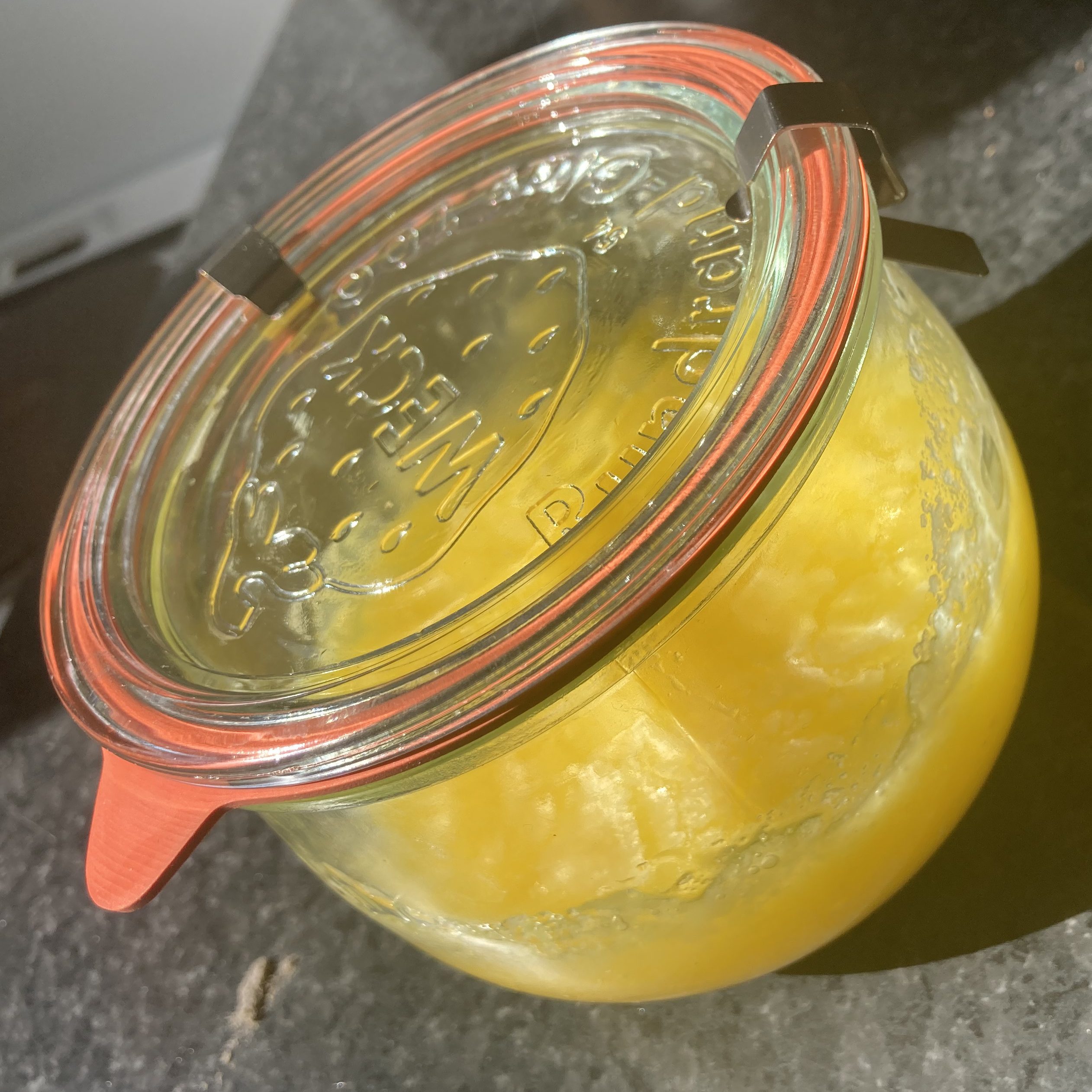 - Lorsque tout le liquide est filtré, laissez refroidir puis fermez le pot de façon hermétique et placez le à l’abri de la lumière et de la chaleur