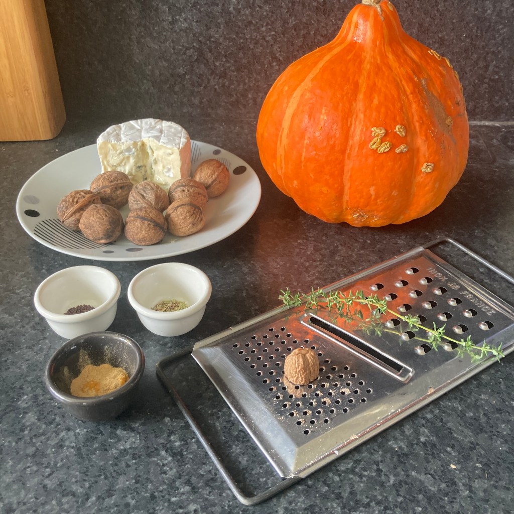 - Décortiquez les noix et peler, puis couper le potimarron en dès d’environ 1 cm²