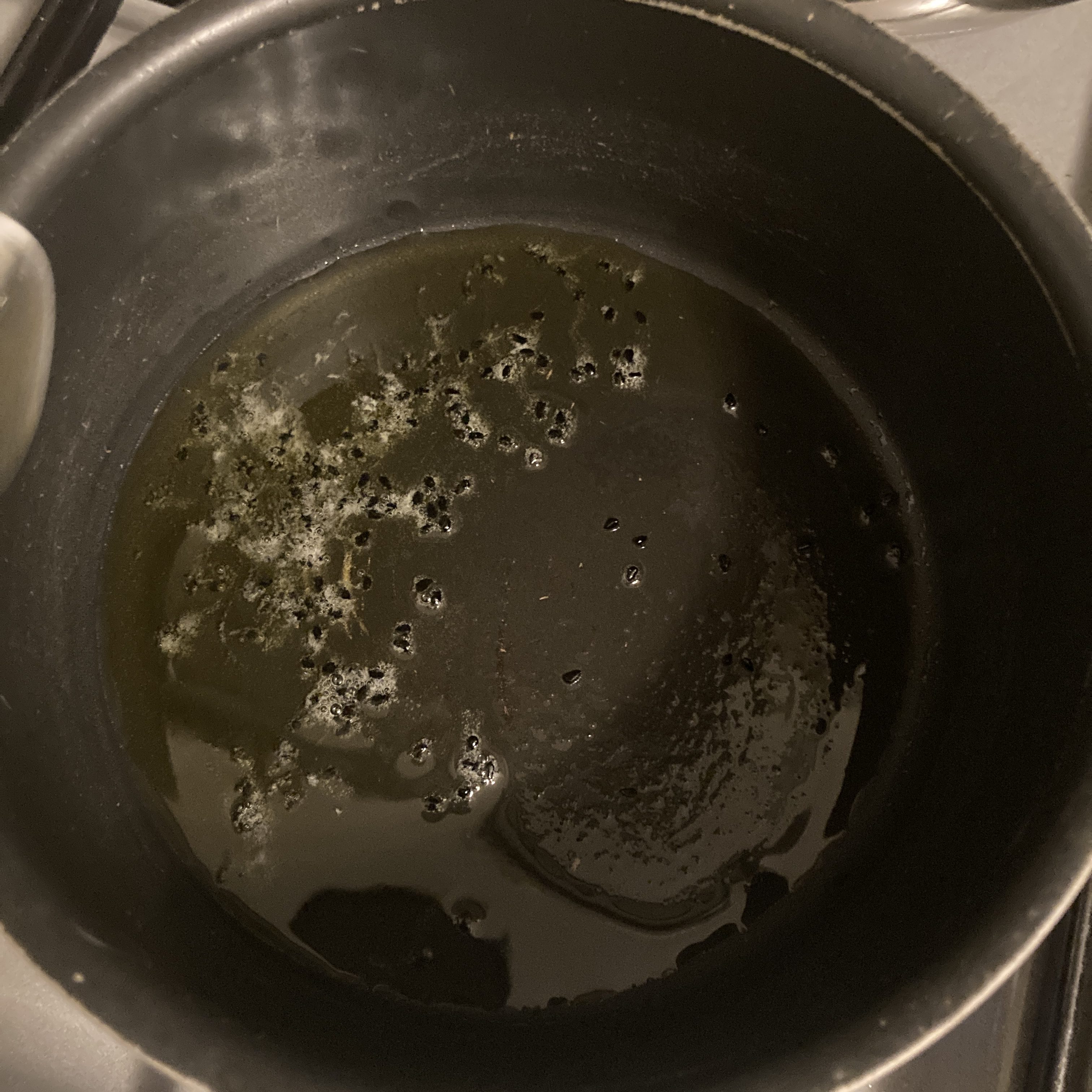 - Faites chauffer l’huile dans une casserole, de préférence à fond épais